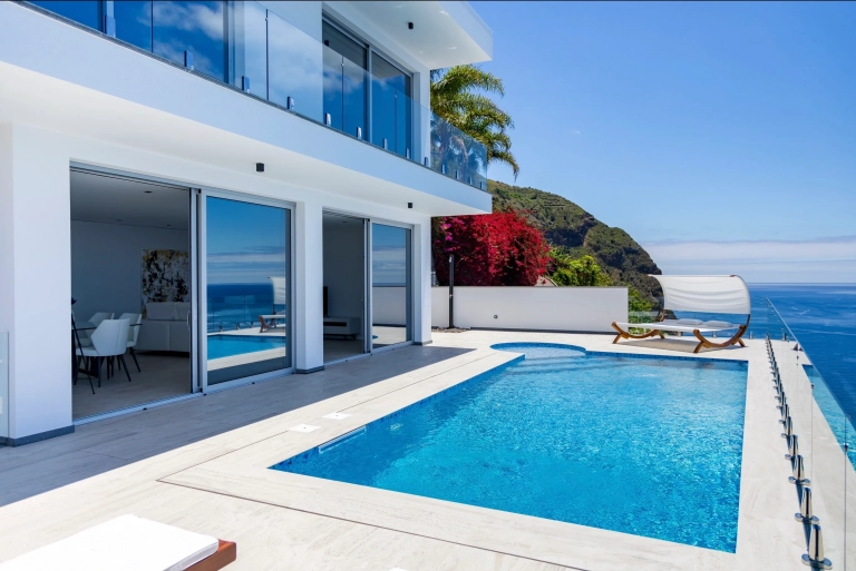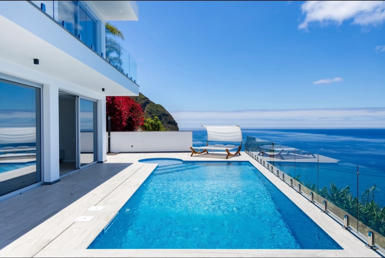 Experience unparalleled luxury in this brand new, ocean front villa, one of the very few available for immediate purchase on Madeira Island.